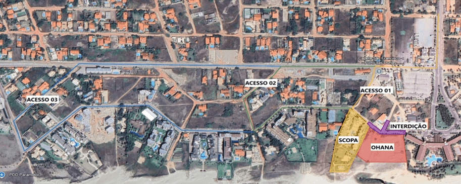 Outro ponto de interdição é um trecho de aproximadamente 100m, compreendido entre os empreendimentos Suítes Beach Park Resorts e Scopa Beach Resort ambos localizados na Av. dos Golfinhos. Isso devido a construção de desvio de uma tubulação de drenagem localizado no terreno do novo condômino OHANA e que passará próximo ao Restaurante Armonia.