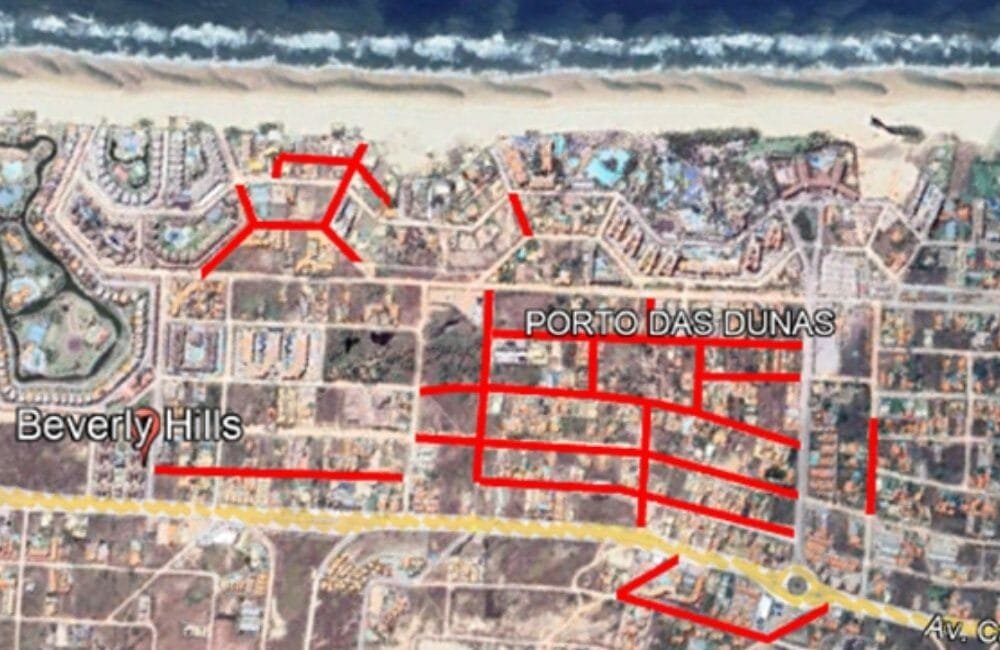 O Beach Park está construindo um novo brinquedo, e por conta dessa construção está interditando a Av. dos Golfinhos entre as ruas Baiacu e Ouriço do Mar. Trecho de aproximadamente 70 metros.
